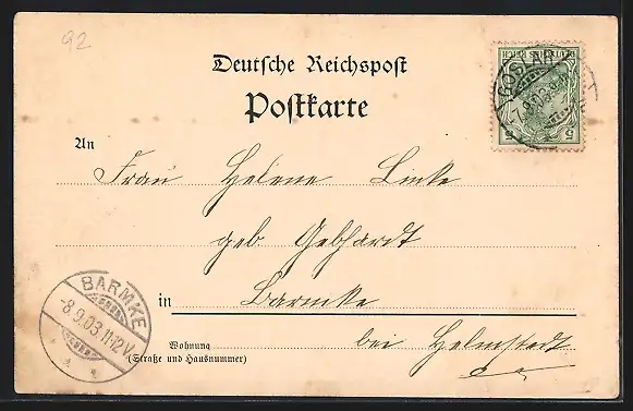 alte Ansichtskarte, gelaufen 1903, Stempelspur, guter Zustand