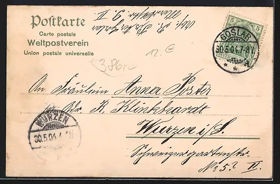 alte Ansichtskarte, gelaufen 1904, guter Zustand