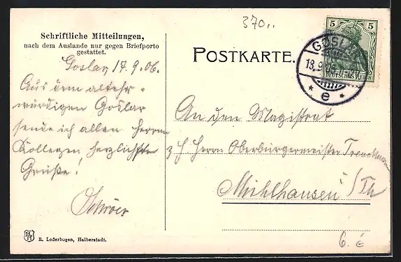 alte Ansichtskarte, gelaufen 1906, guter Zustand