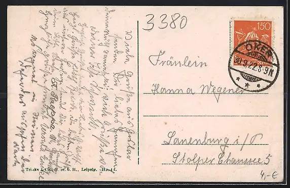alte Ansichtskarte, gelaufen 1922, Bugspur unten li., guter Zustand