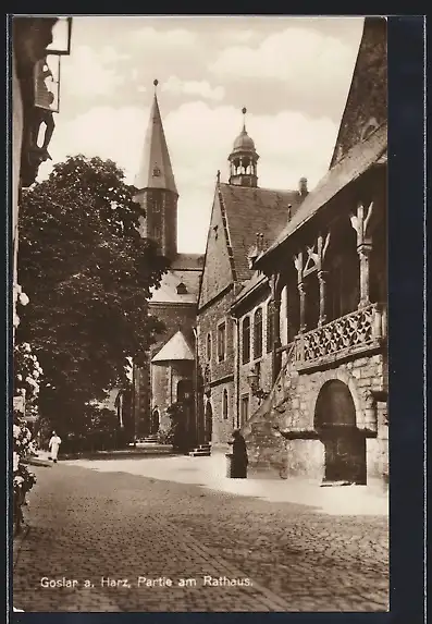 AK Goslar a. Harz, Strassenpartie am Rathaus