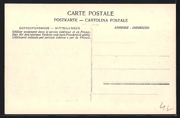 Personenbezogene Daten auf der Rückseite der Karte wurden durch blauen Textmarker unkenntlich gemacht. Die blauen Stellen sind auf die Vorderseite durchgeweicht und wirken sich negativ auf das Postkartenfoto aus