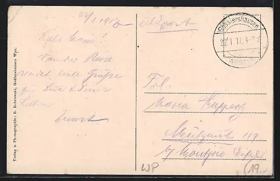 alte Ansichtskarte, gelaufen 1917, Eckknick re. oben, guter Zustand