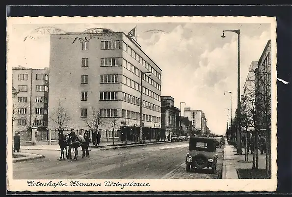 AK Gotenhafen, Hermann Göring-Strasse mit Autos,