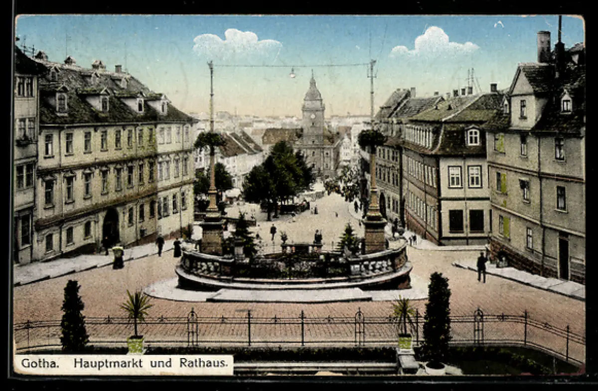 AK Gotha, Hauptmarkt und Rathaus