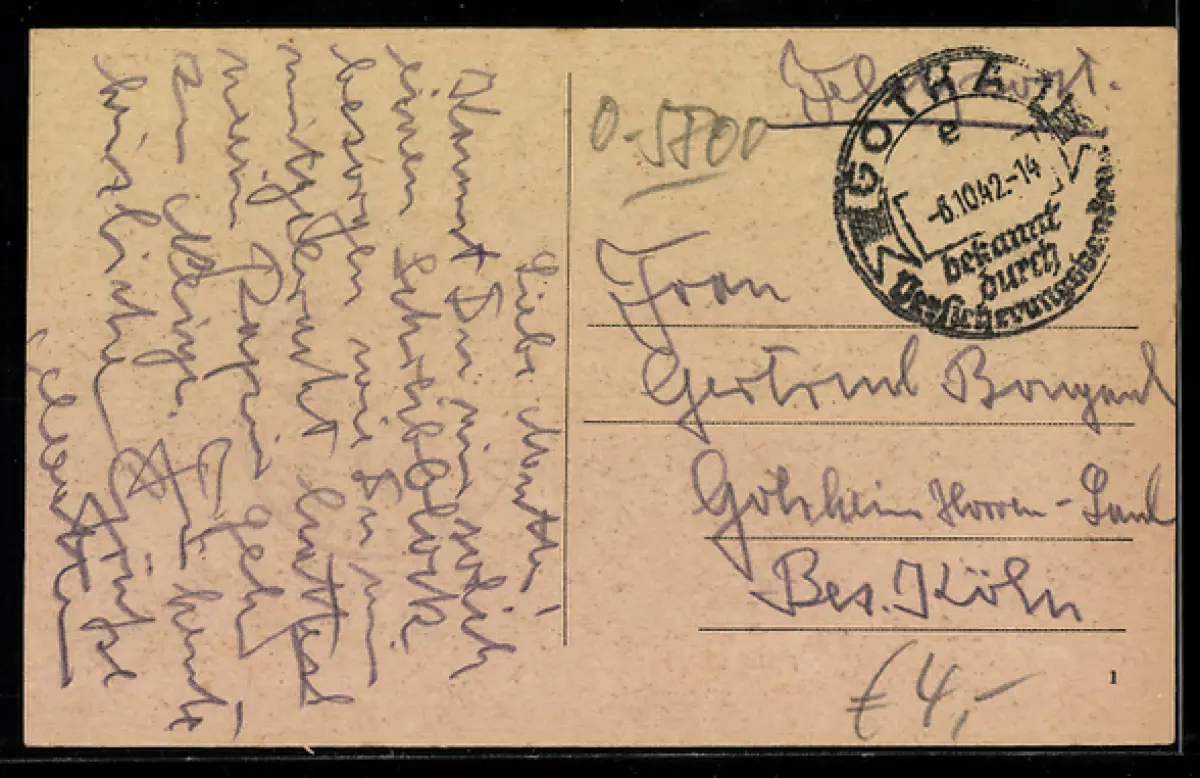 gelaufen 1942, Eckknicke li. oben, guter Zustand