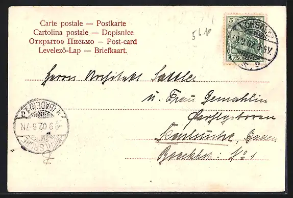 alte Ansichtskarte, gelaufen 1902, Eckknick unte re., guter Zustand