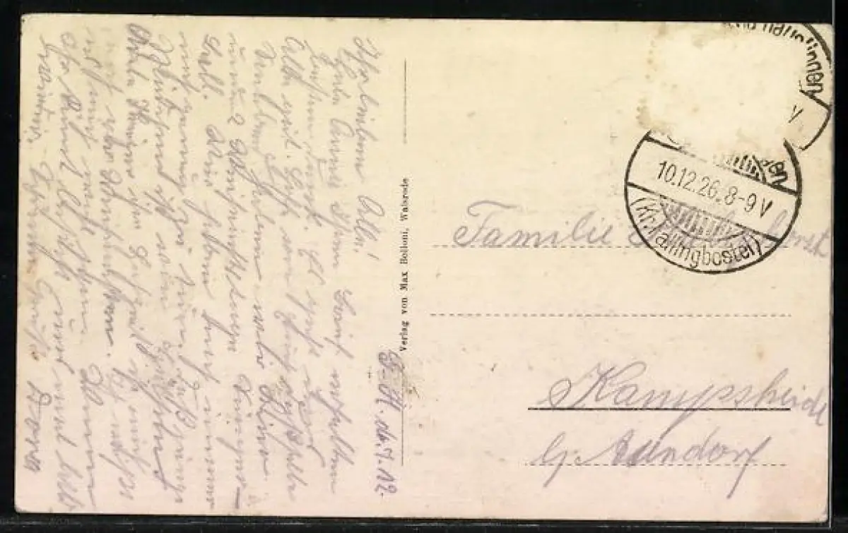 alte Ansichtskarte, gelaufen 1926, Briefmarke entfernt, rückseitig Oberflächenschaden, guter Zustand