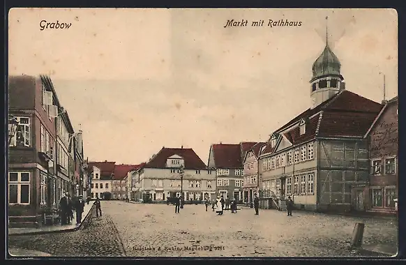 AK Grabow / Magdeburg, Markt mit Rathaus