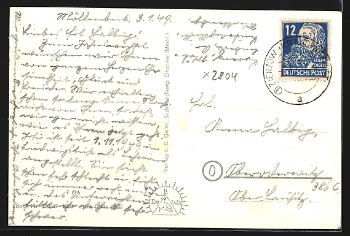 alte Ansichtskarte, gelaufen 1949, guter Zustand
