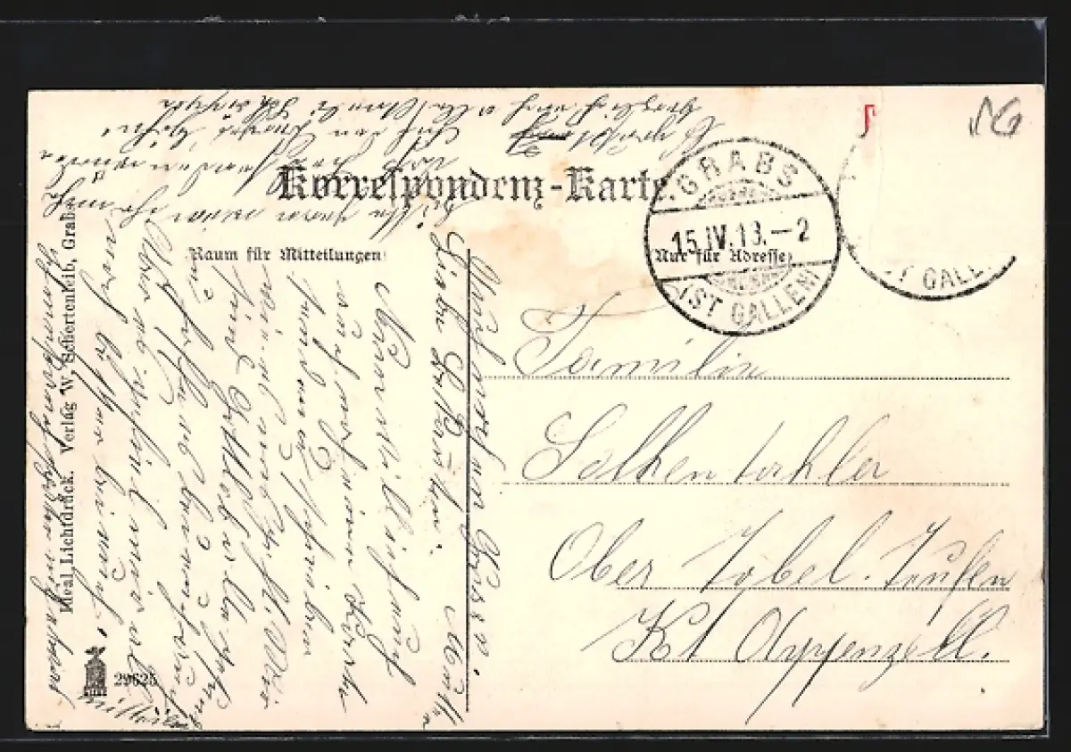 alte Ansichtskarte, gelaufen 1913, Briefmarke entfernt, rückseitig Oberflächenschaden, guter Zustand