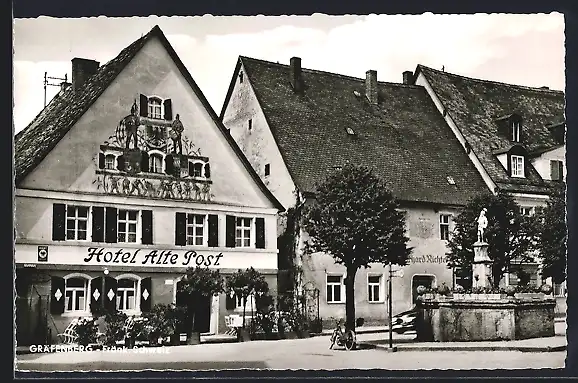 AK Gräfenberg /Fränk. Schweiz, Hotel Alte Post mit Denkmal