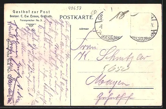 AK Gräfrath, Gasthof zur Post, Marktplatz