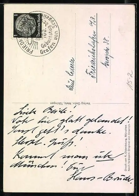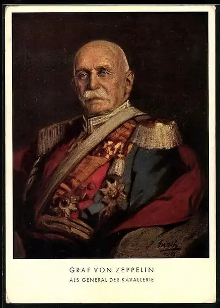 AK Graf Zeppelin in Uniform, Zeppelinpost-Ausstellung anlässlich des 100. Geburtstages des Grafen, Juli 1938