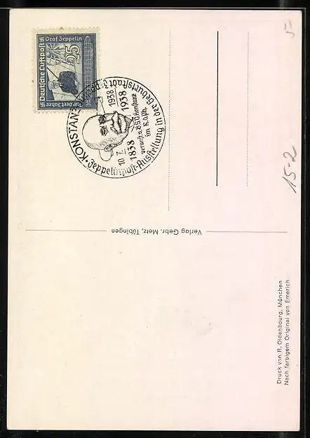 AK Graf Zeppelin in Uniform, Zeppelinpost-Ausstellung anlässlich des 100. Geburtstages des Grafen, Juli 1938
