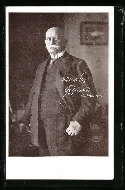 AK Graf Zeppelin mit Propaganda-Spruch: Mut ist Sieg 1916