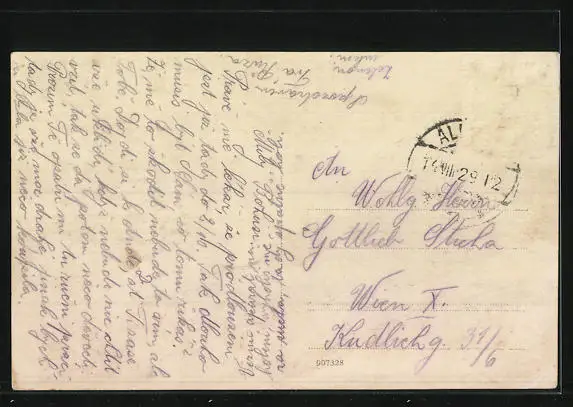 alte Ansichtskarte, gelaufen, Briefmarke entfernt, guter Zustand