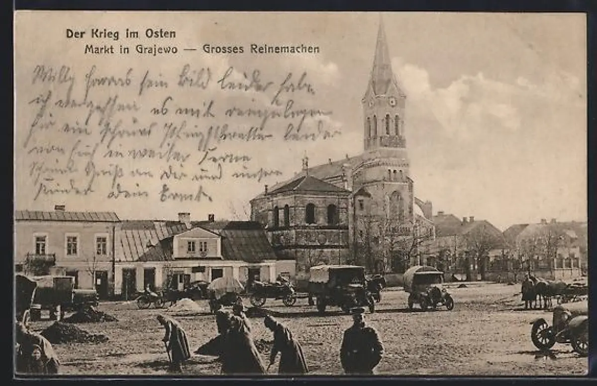 AK Grajewo, Grosses Reinemachen auf dem Markt