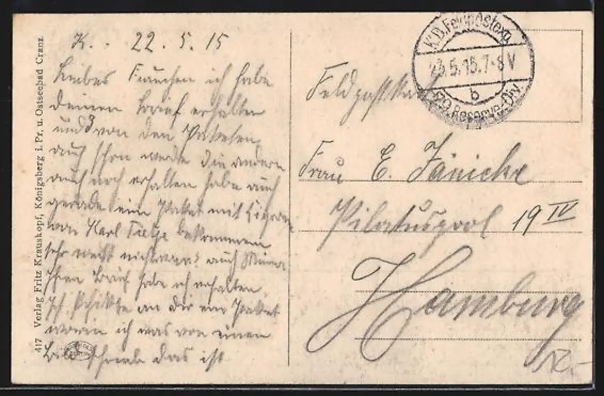 alte Ansichtskarte, gelaufen 1915 als Feldpost, guter Zustand