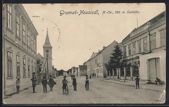 AK Gramat-Neusiedl, Strassenpartie mit Volksschule