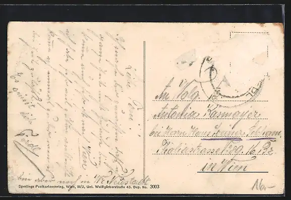 alte Ansichtskarte, gelaufen, Briefmarke entfernt, rückseitig Oberflächenschäden, Eckknick re. unten