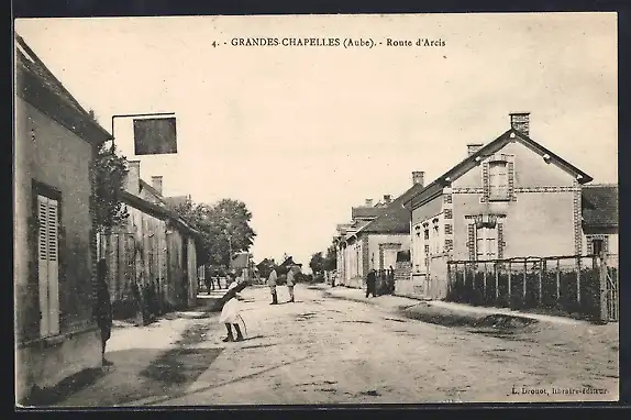 AK Grandes Chapelles, Route d`Arcis animée avec passants