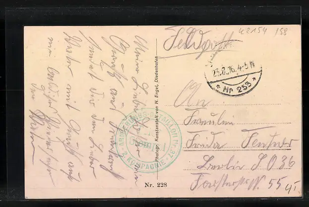 alte Ansichtskarte, gelaufen 1916 als Feldpost, guter Zustand