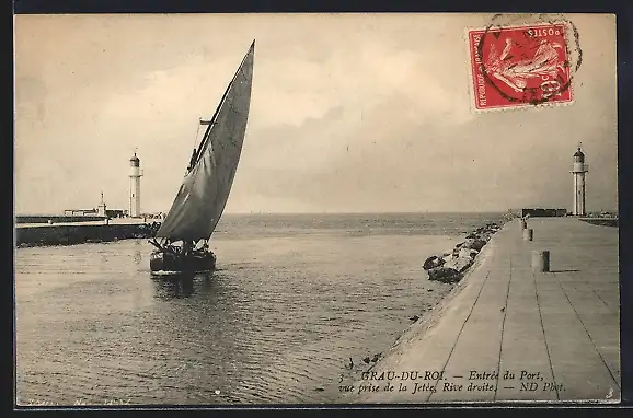 AK Grau-du-Roi, Entrée du Port, vue prise de la Jetée, Rive droite