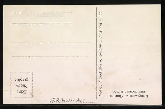 Personenbezogene Daten auf der Rückseite der Karte wurden durch blauen Textmarker unkenntlich gemacht. Die blauen Stellen sind auf die Vorderseite durchgeweicht und wirken sich negativ auf das Postkartenfoto aus