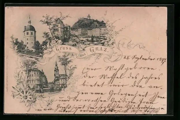AK Graz, Auerspergplatz, Hauptplatz und Glockenthurm