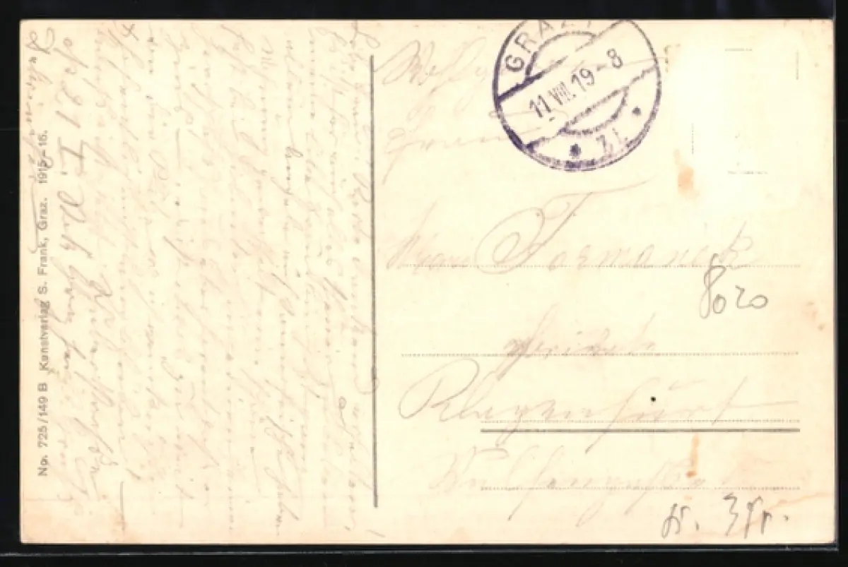 alte Ansichtskarte, gelaufen 1919, Briefmarke entfernt, rückseitig Oberflächenschaden, Eckknick re. oben, guter Zustand
