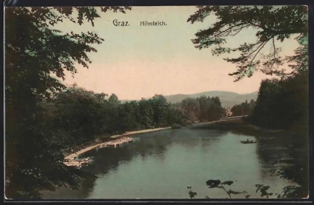 AK Graz, Hilmteich, Ruderboote am Ufer