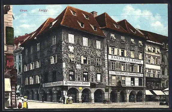AK Graz, Luegg Haus mit AK-Geschäft Ansichtskarten-Zentrale