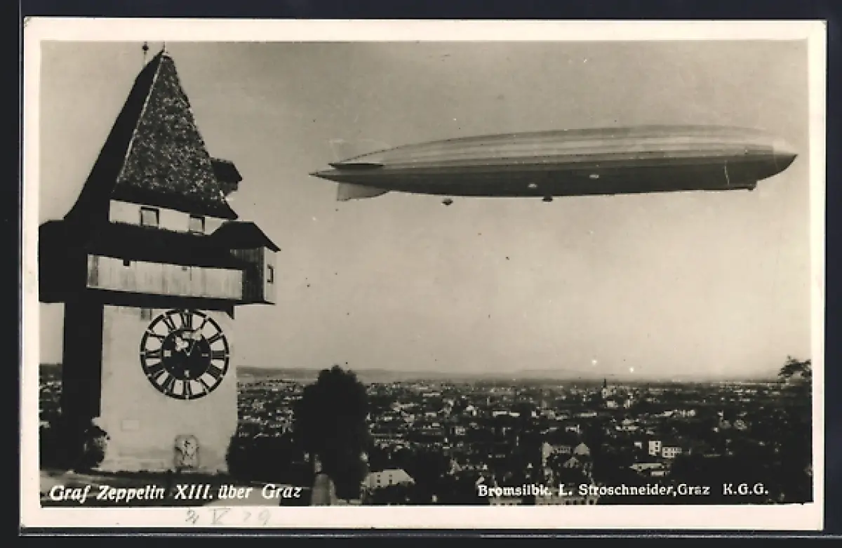 AK Graz, Luftschiff Graf Zeppelin XIII. über der Stadt