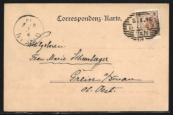 alte Ansichtskarte, gelaufen 1898, guter Zustand