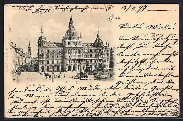 AK Graz, Rathaus und Strassenpartie mit Strassenbahn