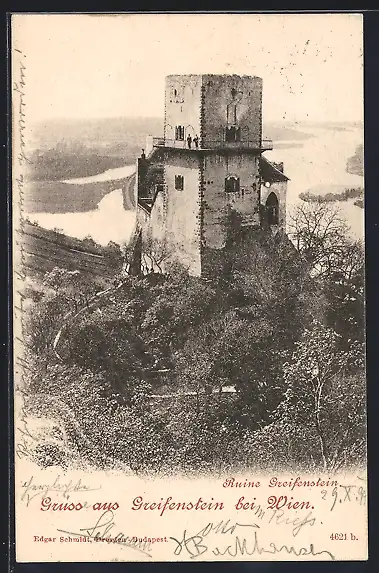 AK Greifenstein, Ruine Greifenstein m. zwei Personen