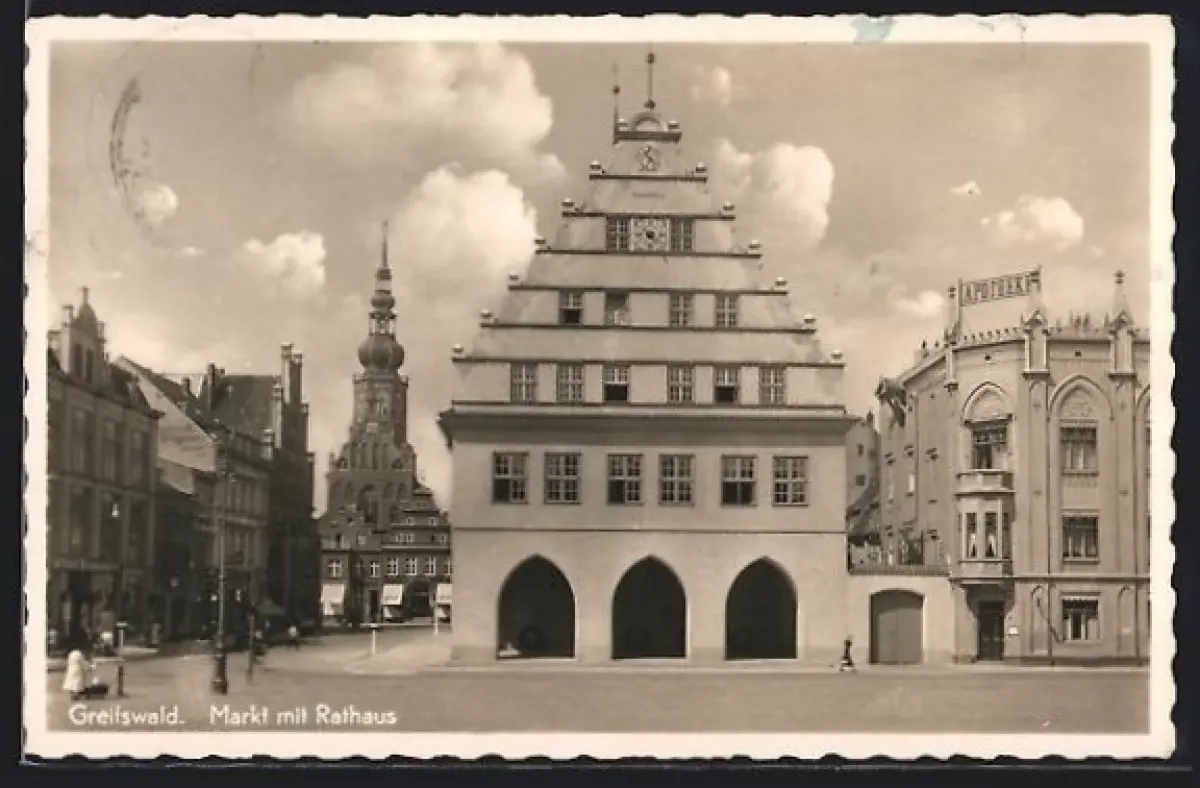AK Greifswald, Markt mit Rathaus