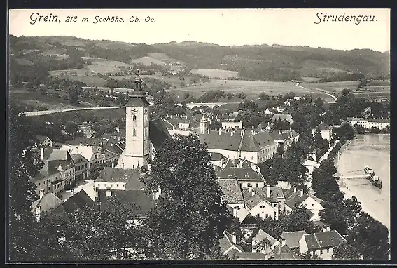 AK Grein /Ob.-Oe., Strudengau, Teilansicht mit Kirche