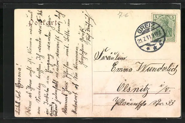 alte Ansichtskarte, gelaufen 1911, Eckbug links oben, guter Zustand