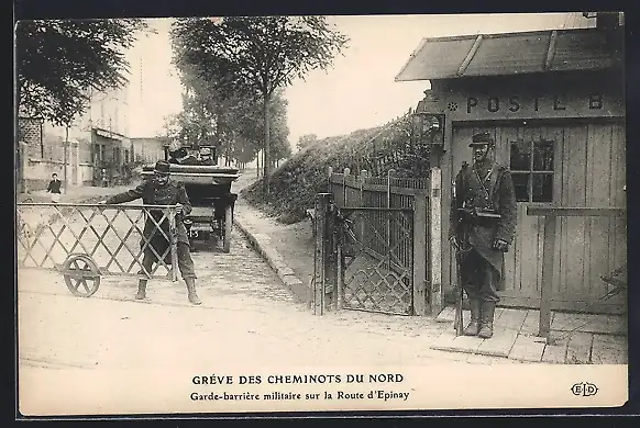 AK Greve des Cheminots du Nord, Garde barriere militaire sur la Route d`Epinay