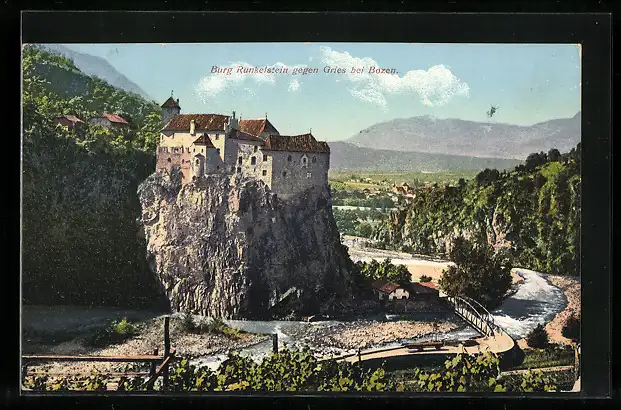 AK Gries, Ortsansicht mit Burg Runkelstein