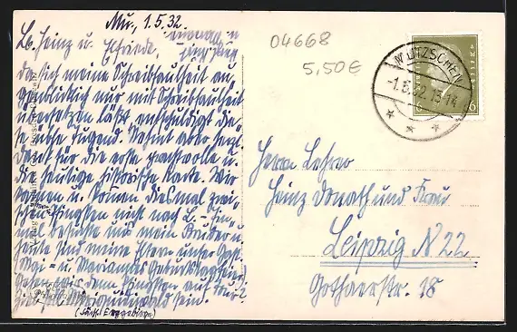 alte Ansichtskarte, gelaufen 1932, Stempelspur, guter Zustand