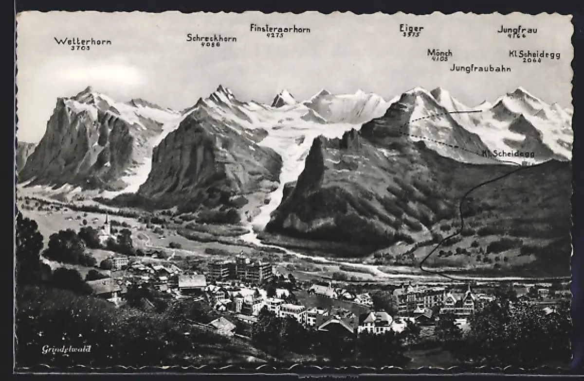 AK Grindelwald, Teilansicht mit Eiger, Mönch und Jungfrau