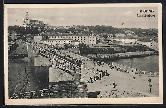 AK Grodno, Stadtbrücke und Blick zur Kirche