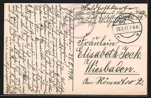 alte Ansichtskarte, gelaufen 1917, Eckknick li. unten, guter Zustand
