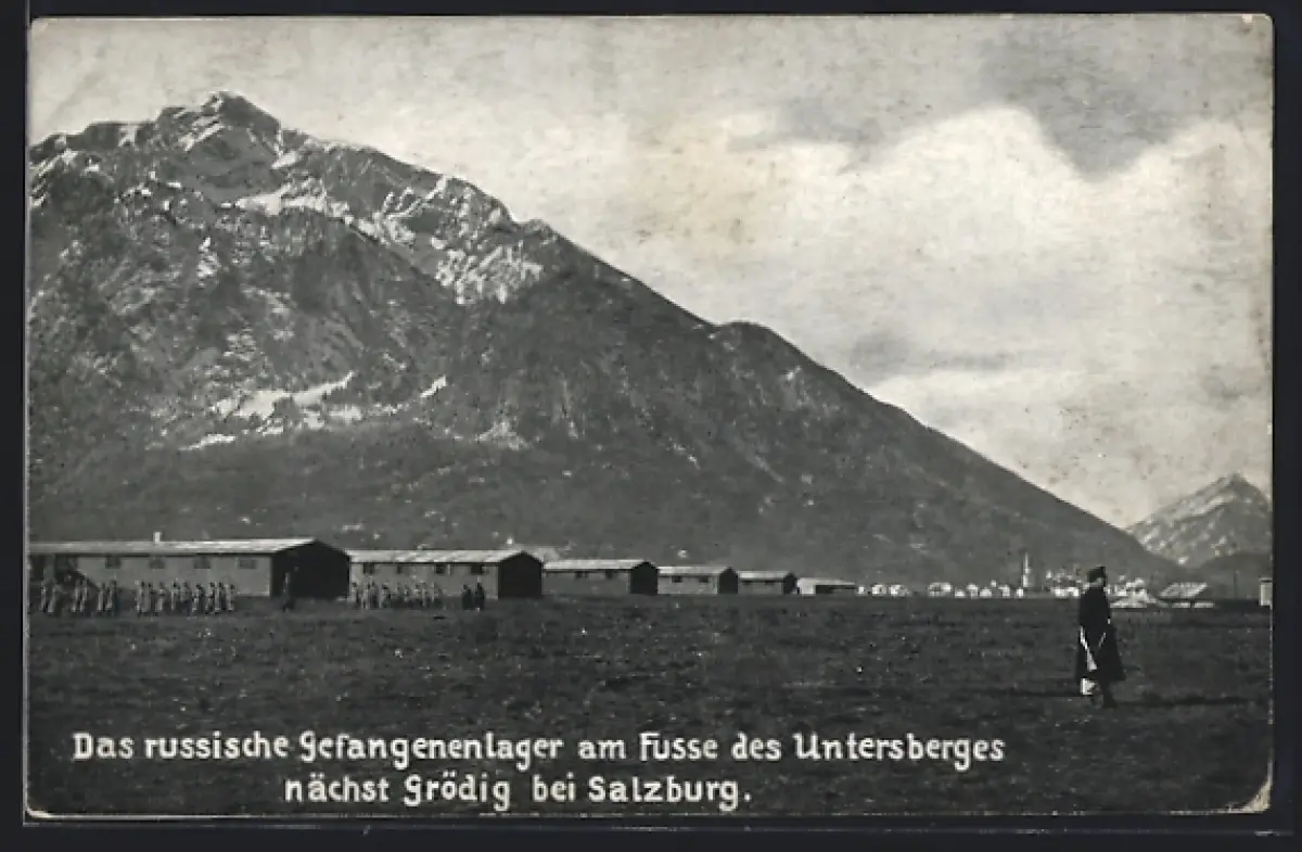 AK Grödig, russisches Gefangenenlager am Fusse des Untersberges