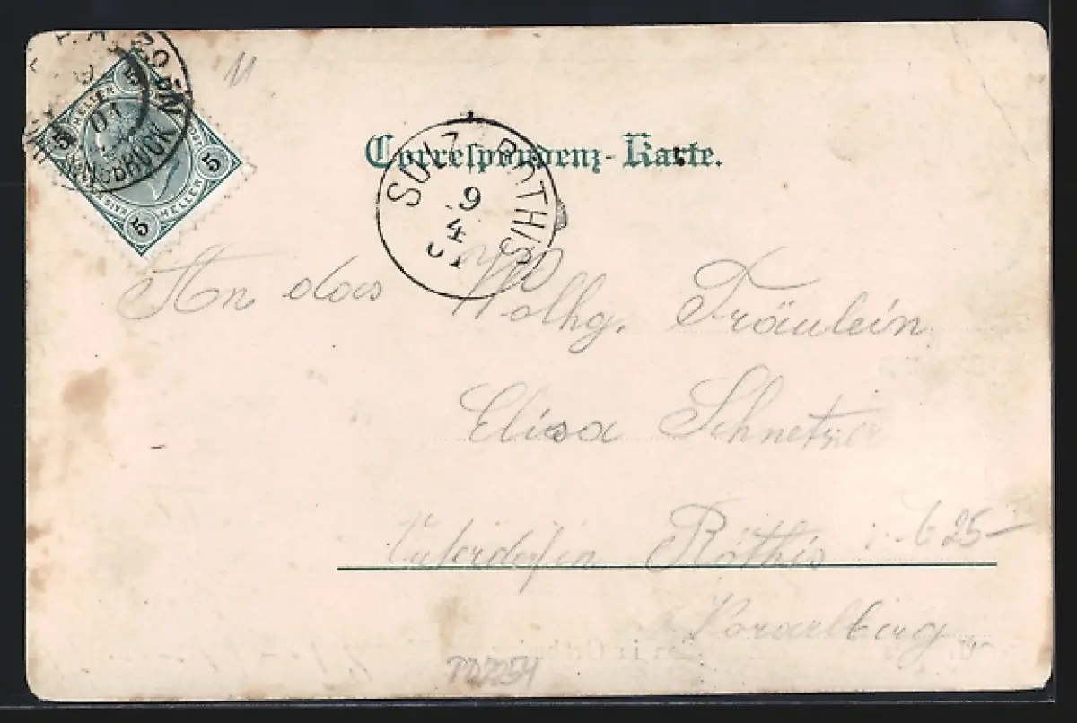 gelaufen 1901, Eckknicke oben, guter Zustand