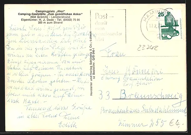 AK Grömitz /Lenster Strand, Campingplatz Ahoi, Gaststätte Zum gemütlichen Anker H. J. Dade