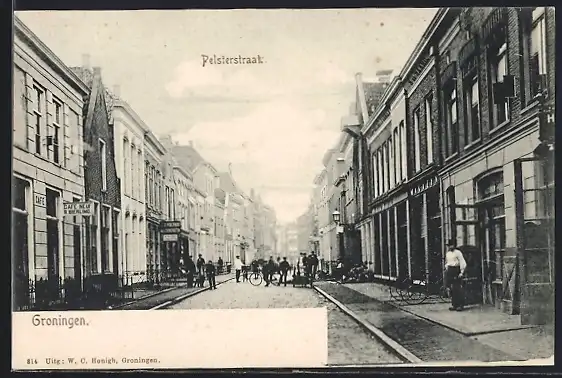 AK Groningen, Pelsterstraat met Cafè Neuf R. Bierling